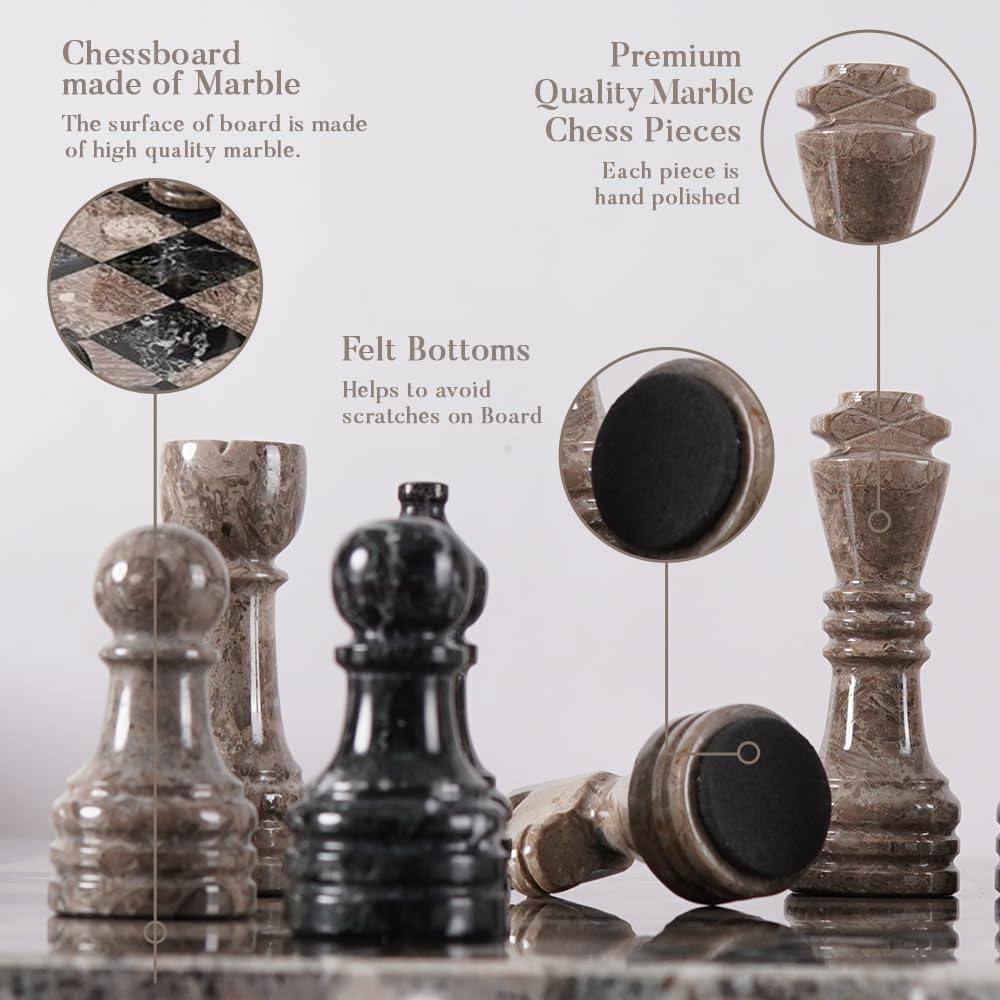 - High-Quality Material: Marble chess set is made from high-quality natural stone for a design. As it is natural a stone, so color or texture may vary sometimes.