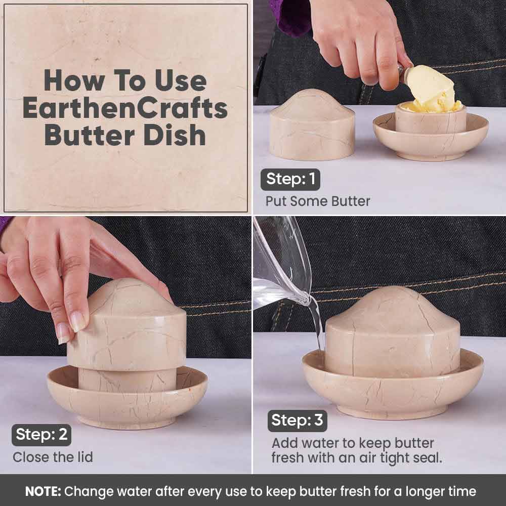 - WHAT’S INCLUDED – 1 Butter Dish with Lid + 4 x Marble Coasters Comes along with Earthen Crafts Branded Secure Packaging.
