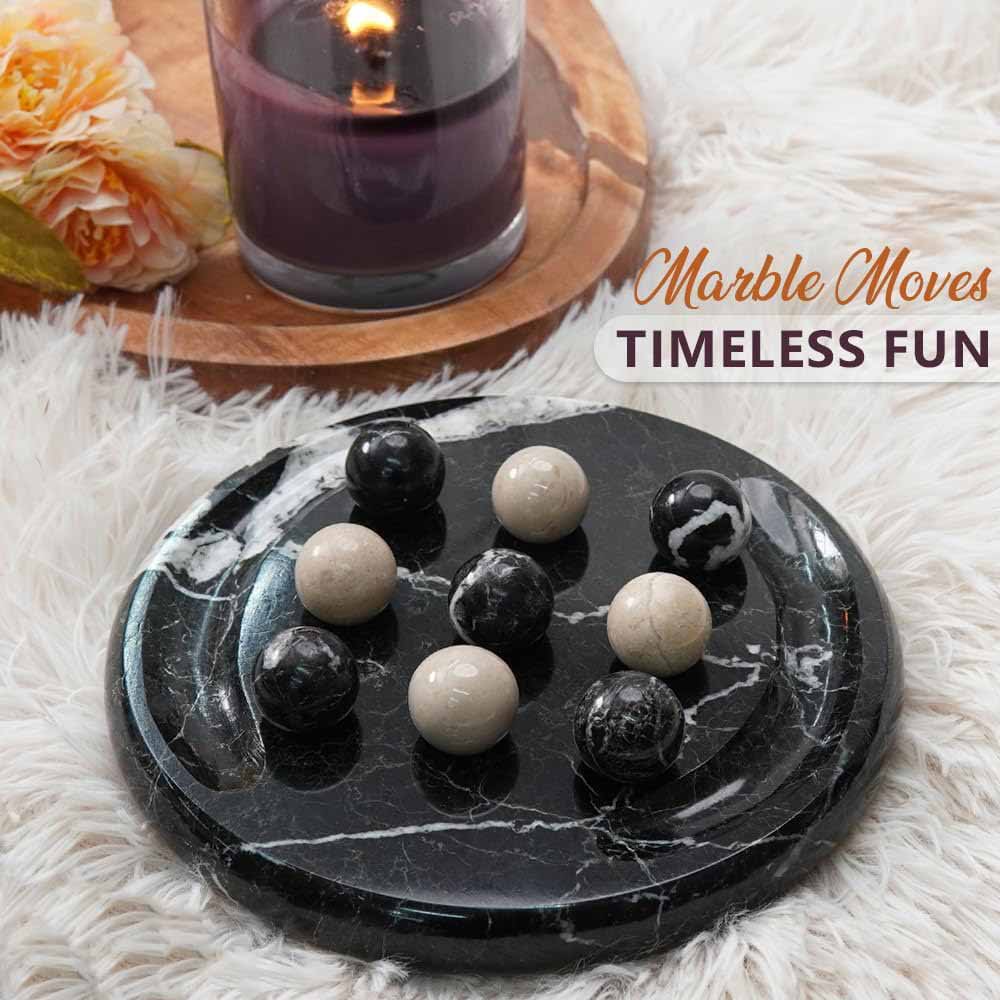 Marble Tic Tac Toe Board Game - 6" Natural Stone Board Game for Coffee Table, Home Décor & Gifts