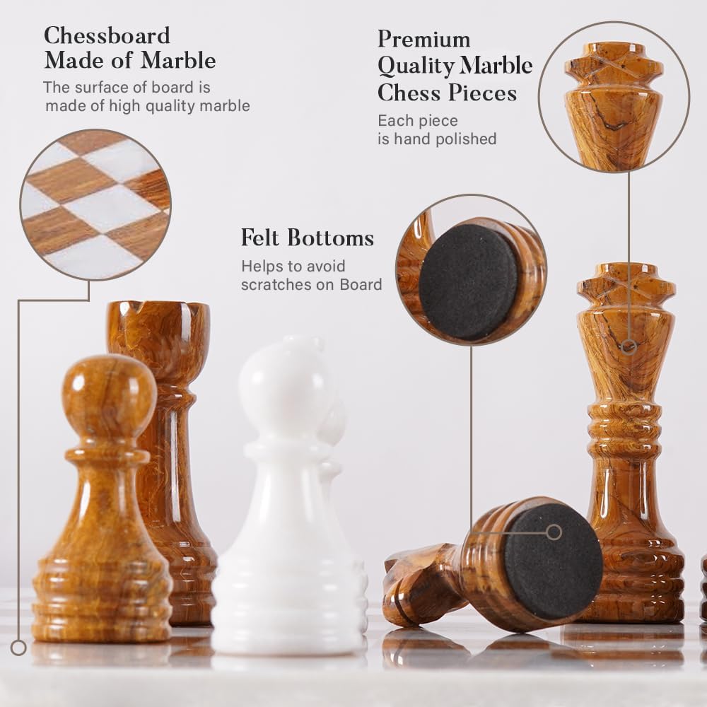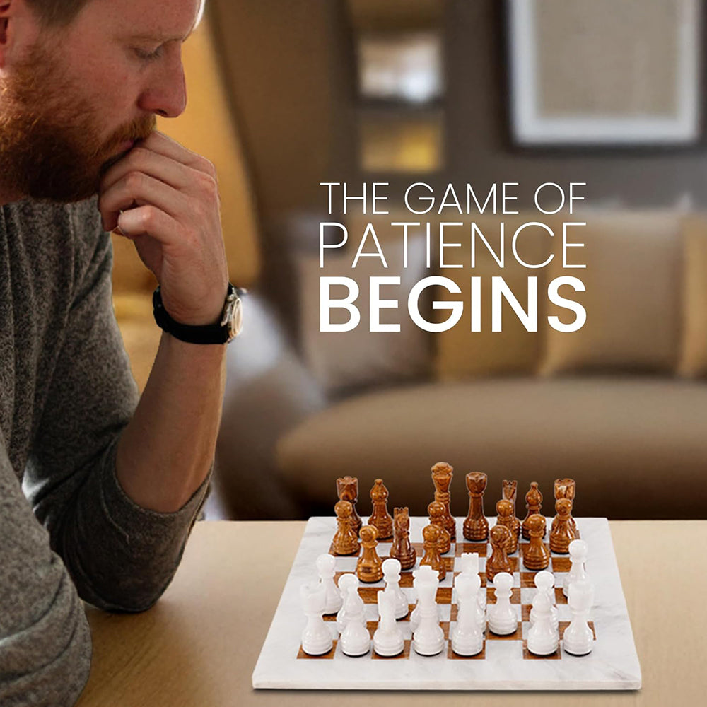 - Complete Chess Set: Includes a 15 inches handcrafted marble chess board, 32 + 2 extra queens chess pieces, and a COMPLIMENTARY STORAGE BOX for safe keeping.